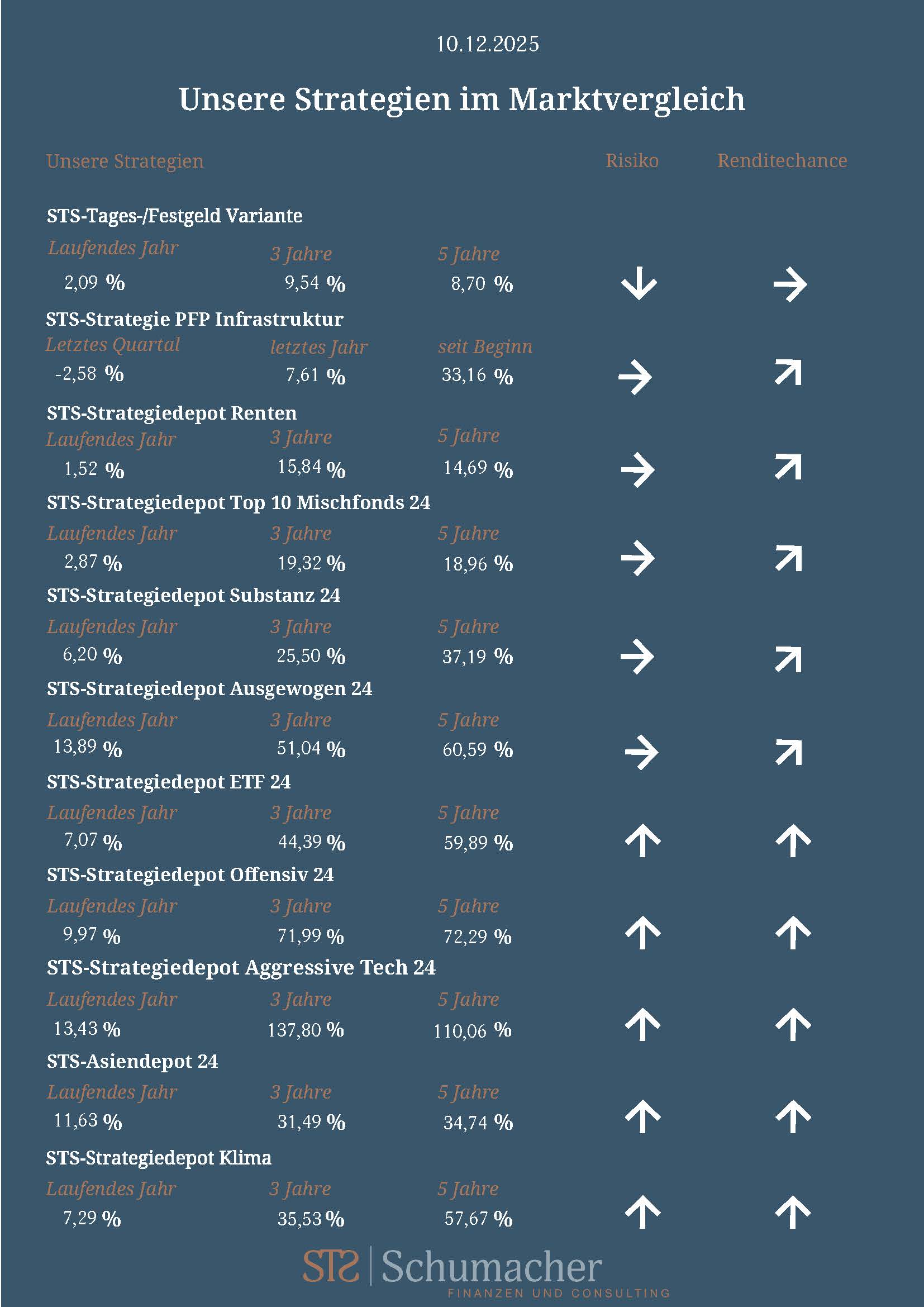 Daher an dieser Stelle, als Last Dance in 2025, unsere Portfoliostrategien transparent für Sie im Marktvergleich!